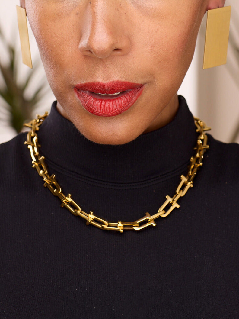 Each link is intentionally imperfect in silhouette, giving this piece an art-driven feel like a wearable modern sculpture. It's powerful enough to stand alone, yet pairs beautifully with crisp tailoring, leather, satin, or minimal basics. Wear it for nights out, gallery days, and moments when you want your jewellery to say I choose edge over ordinary. A piece that doesn't just accessorise, it defines the look.