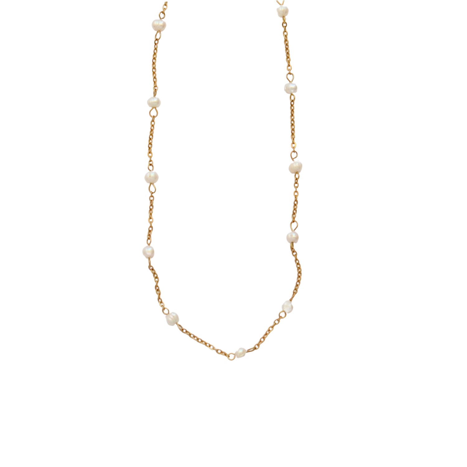 Understated Elegance with Freshwater PearlsThe Pearl Dot Chain delivers quiet luxury in its purest form. A delicate chain dotted with small freshwater pearls sits beautifully at the collarbone, adding a soft hint of lustre that feels timeless, modern, and effortlessly elevated.